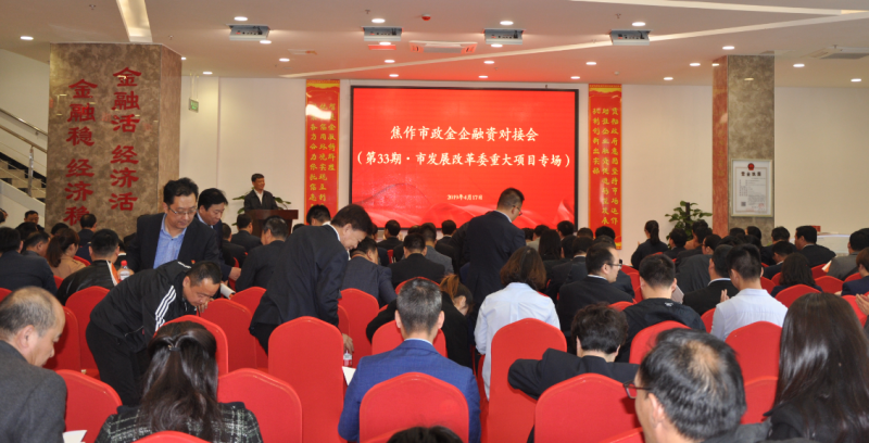 2019年4月17 日上午,焦作市政金企融资对接会(第33期•市发改委重大项目专场)在市智慧金融服务有限公司举行,市投资集团有限公司副总经理郭中强、建投公司董事长关玉红参加会议。