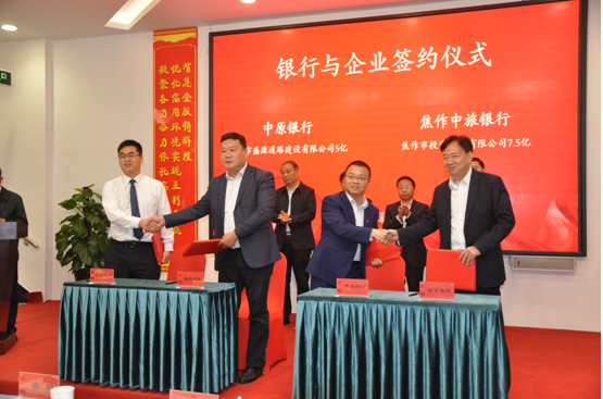 会上,由市发改委组织对接,举行了银企签约仪式,郭中强副总代表市投资集团有限公司与中旅银行签约,金额为7.5亿元;建投关玉红董事长代表市盛源道路建设有限公司与中原银行签约,金额为5亿元。