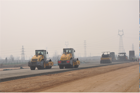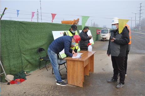 在检疫关口,工人个个戴着口罩,经过体温检测、信息登记、领取防护用具等一系列“规定动作”后,有序进入工地。在施工现场,车辆穿梭、机声隆隆,几台刮平机在高低不平的黄土地上来回作业,紧跟其后的压路机反复碾轧路面,将松松的黄土地轧得结实平整,为了赶工期大家不敢有丝毫懈怠,在保证疫情防控的同时争分夺秒地加快施工建设。