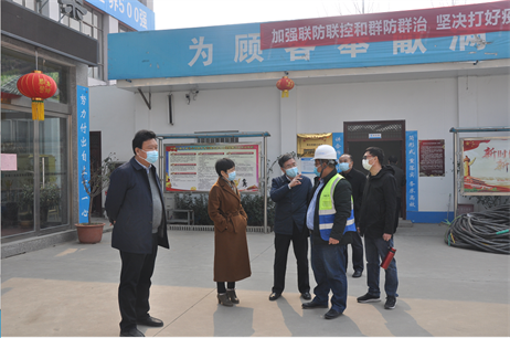 在东海大道项目指挥部,孙菊梅局长详细了解查看了工程物资储备、人员防控信息登记台账和体温测量记录等具体防疫工作,嘱咐工程项目负责人一定要做好疫情防护措施,确保施工人员的身体健康。