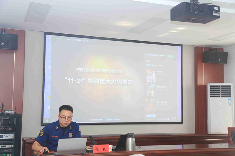 为深入贯彻落实习近平总书记关于安全生产的重要论述和重要指示批示精神,按照集团公司“安全生产月”活动部署,围绕“人人讲安全,个个会应急—畅通生命通道”主题,6月21日下午,集团公司组织开展2024年消防安全知识培训暨应急演练活动,邀请市消防救援支队防火监督科科长张良为集团及各所属公司安全生产工作分管领导、部室负责人及职工代表授课。
